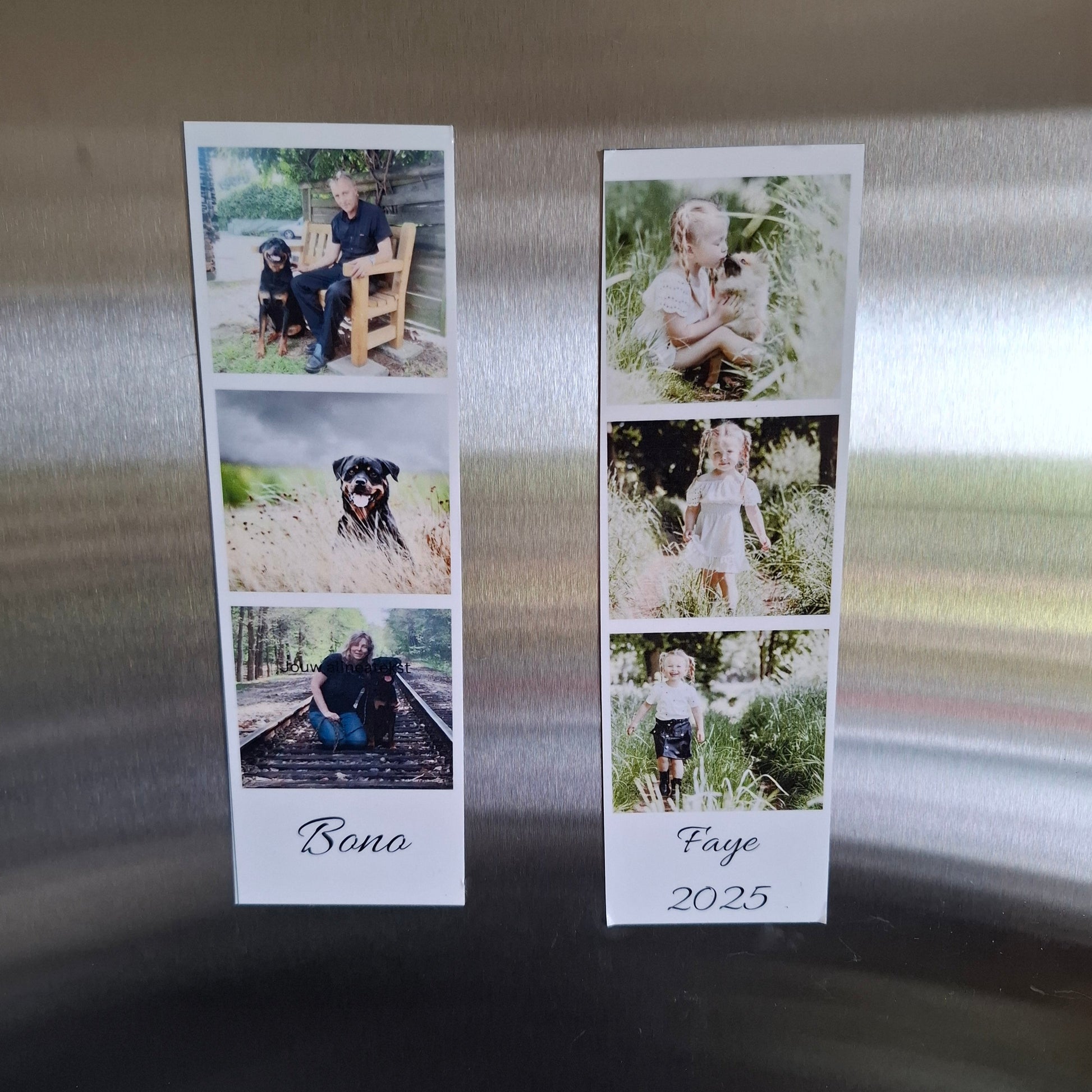 Bij deze magneten lever je 3 foto's in en een tekst en of datum. Erg leuk met foto's van hetzelfde thema. Bv een dank je wel cadeau na een bepaalde gebeurtenis. Of voor een originele uitnodiging. De tekst kun je via contact formulier invullen.