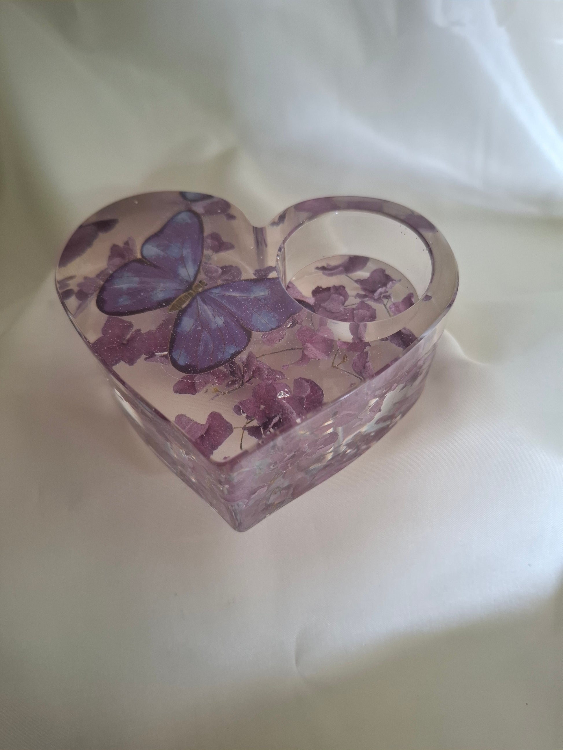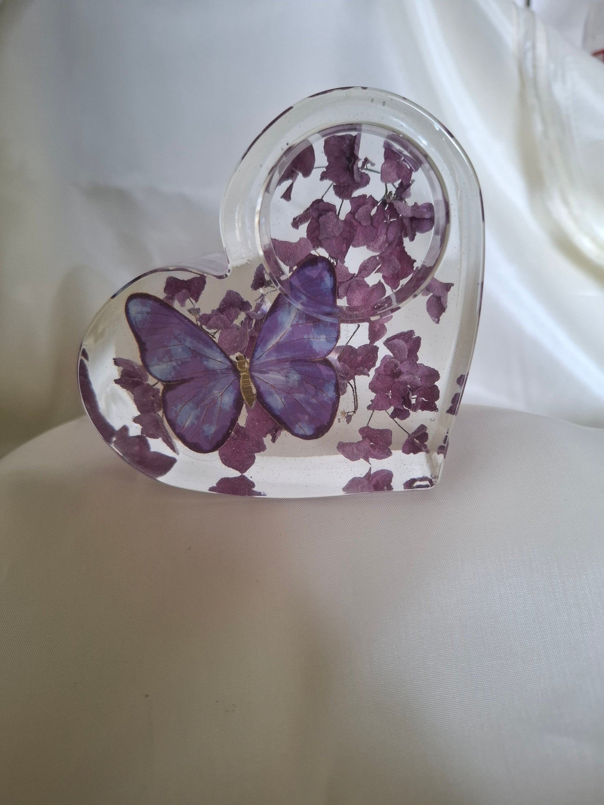 Leuk waxinelichtje met bloemen en een vlinder in paars tinten, voor een klein waxinelichtje, Samen met 2 waxinelichtjes met een geheime boodschap