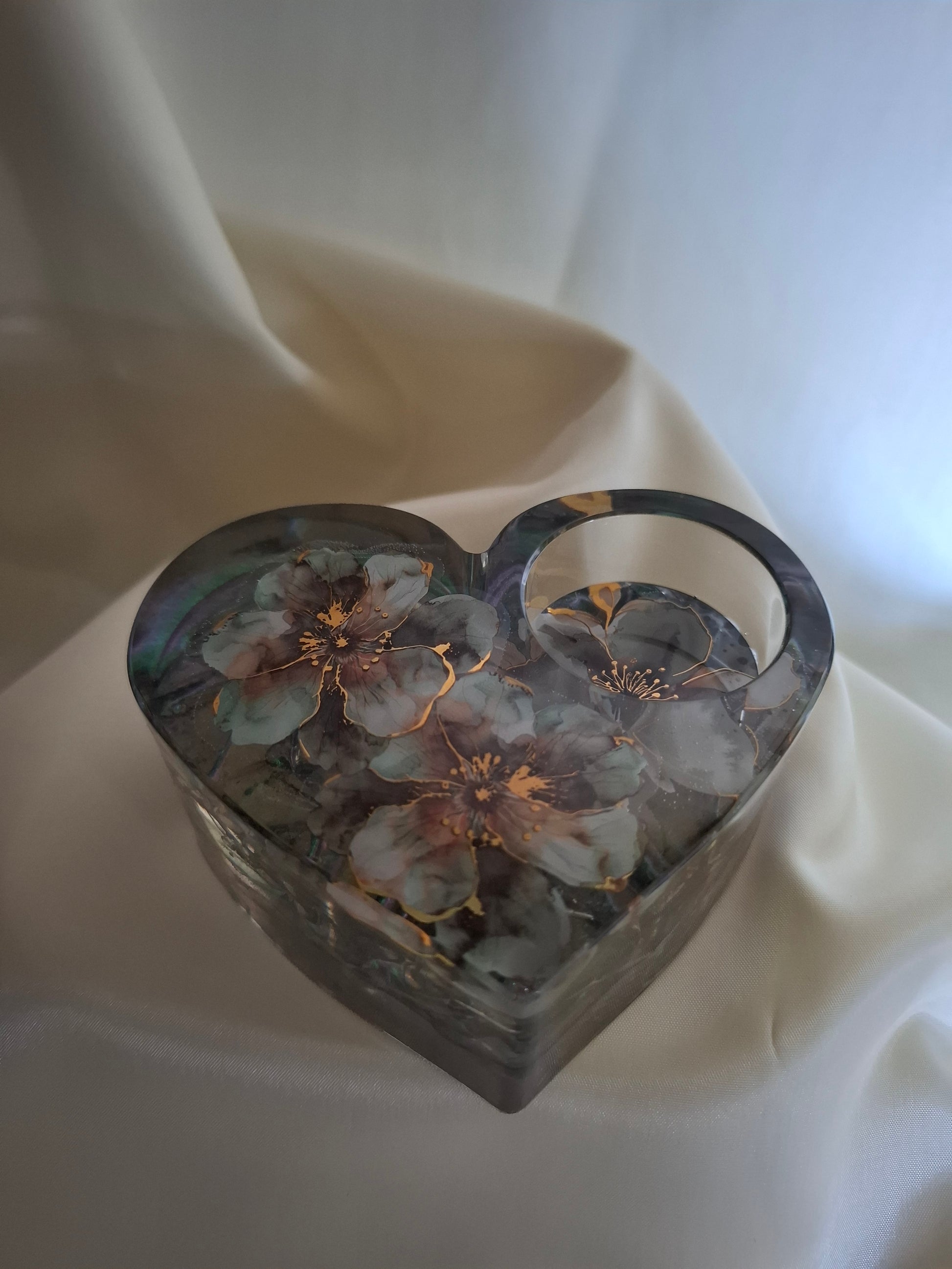 Waxinelichtje hart vorm bloemen groen en goud